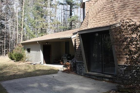 -Enjoy your privacy in this unique, spacious geodesic home on a 3.9 acre wooded lot w/stream. Look at the scenery out the large windows in the vaulted ceiling great room. Full LL offers more space for enjoyment or gatherings. Extra 2-story garage with heated work-shop and un-finished loft offers additional opportunity. 9" walls, updated roof/windows. Wired for Uverse/Phone/Sat. Home Warranty inc.