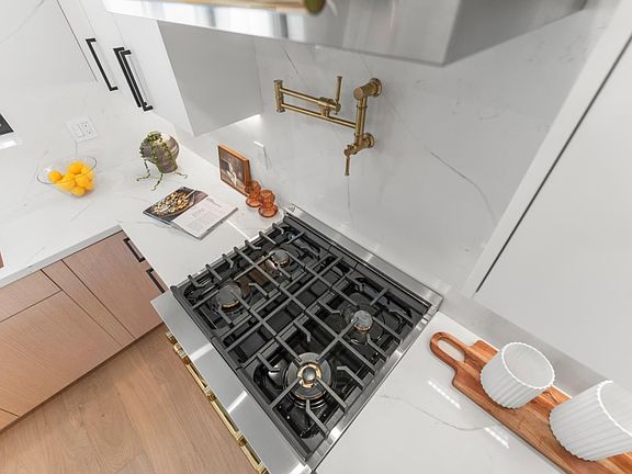 Inviting fireplaceGourmet kitchenCustom cabinetryQuartz countertopsRecessed led lightingOpen-concept feelFunctional kitchen