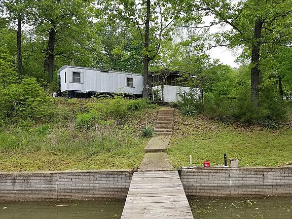 2 lots ( approx 120'+114'+120'+108') lake front with seawall and dock. Older mobile home, unused for 20 years, Needs major work or removal and start from scratch or place RV on lots. Electric to pole. Water to meter. Selling as is. No warranty. Not fixing anything.
