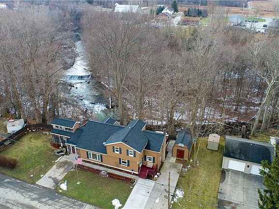 Impressively remodeled home top to bottom! Kitchen w/beautiful cabinets, countertops, tiled backsplash, flooring, appliances, etc. Updated/remodeled bathrooms, 1st & 2nd floor masters/in-law suite, new roof, 2nd floor new windows, freshly painted throughout w/current colors, 1st & 2nd floors have gleaming hardwood flooring, new can lighting throughout, basement tanning bed included. Multiple sheds for storage. New huge deck overlooking gorgeous serene view of creek, that takes your breath away!