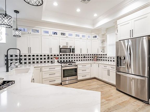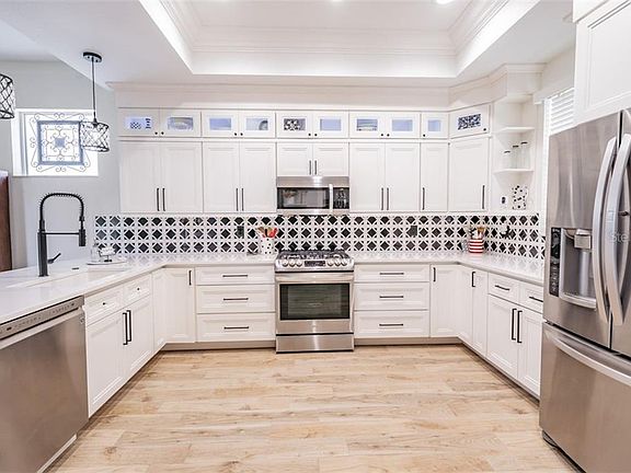 STUNNING AND COMPLETELY REMODELED 4 BEDROOM HOME WITH OFFICE ON OVERSIZED LOT IN HIGHLY SOUGHT LONGLEAF! This one is special and boasts an open floor plan that combines the kitchen, dining, and family rooms creating the perfect space for entertaining or spending quality time with family! This family/dining room is equipped with cozy wood burning fireplace for those cool evenings! This kitchen has been completely remodeled with cabinets to the cieling, Silestone granite counter tops, High end LG stainless steel appliances, breakfast and coffee bars, tile backsplash, and canned lighting! The completely remodeled master bed/bathroom boasts 2 walk-in closets, two vanities, tub, and walk-in shower with no detail left unfinished! Relax on the screened-in back porch that overlooks the oversized backyard that is completely fenced in! Other great features of this home include its wood-like tile throughout main areas, newer light/fan fixtures throughout, inside utility room, various built-in storage systems throughtout, and complete Vivant security system! All of this in the highly sought green community of Longleaf which provides easy access to Tampa and Clearwater! Longleaf amenities include shops/restaurants, clubhouse, heated pool/spa, parks, playgrounds, walking trail, tennis/beach volleyball/basketball courts, baseball field, and plenty of community events throughout the year! Longleaf Elementary and Longleaf learning center located within the neighborhood! (CDD fee is included in tax figure) (No Flood Insurance Required)