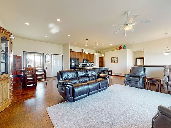 This beautiful ranch is located in a family-friendly neighborhood, on a quiet street, close to Elementary School, Grocery, Convenience Stores, and Golf Courses. The main level has hardwood floors, an office/study, and features a fireplace. Also on the main level are 2 bedrooms, 2 full baths, and laundry. The kitchen features hardwood floors, granite counters, a tiled backsplash, and a pantry. Appliances stay with the home. The primary bedroom is located on the main level and features carpet floors and a walk-in closet. The primary bedroom attached bath includes tile floors, solid surface counters, and one piece shower. The finished walkout lower level features a bedroom, full bath, office/study, and storage area. Outside you'll find a three seasons porch and patio overlooking the yard with mature trees. Unique workshop or hobby/room attached to an oversize 2-stall garage with a direct driveway to Granger Ave. Exterior features include a great view. Call today for a private showing!