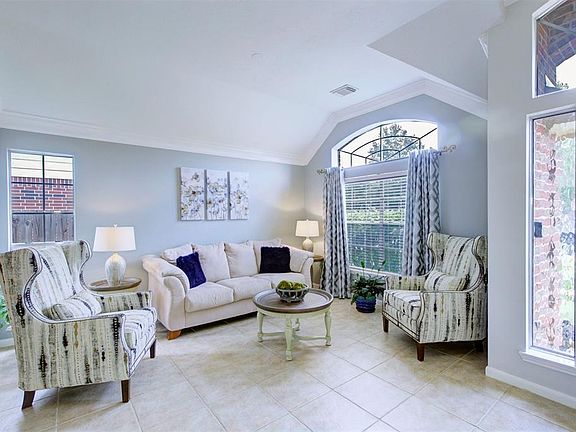 This stunning one story fully bricked home has up to 4 bedrooms, 2 full baths, and both a formal living and dining room! This hard to find gem also has NO CARPET! It has gorgeous updated tile and laminate wood flooring throughout! Ceiling fans in all bedrooms and family room! Spacious primary bedroom with large recently remodeled ensuite bath- with tub and separate shower. Primary bedroom also has two separate closets and two sinks! The family room is a great size with a corner wood burning fire place with gas connections. Kitchen has stainless steel Fridgedaire appliances and a skylight making the room so bright! Exterior and interior of home has been recently painted neutral updated colors. Cozy extended covered patio has a ceiling fan. Recently replaced fence, A/C, duct work, and roof. Quiet street with easy access to I-45, Grand Parkway, Exxon Mobil. Walking distance to Klein schools for elementary, junior high and high school! Do not miss this great floor plan and gorgeous home!!
