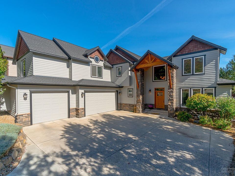 This home has the versatility to fulfill a variety of needs with approx. 750 sq ft set aside as separate living quarters. An extremely smart floor plan with master, great room and den on the main floor and a loft, 2 bedrooms, another den and a full bath upstairs with access to a spacious ATTACHED APARTMENT. The apt. is set above the ext. 3 car garage with its own entrance off the the third bay; so it has separate and very private living quarters for long term rental opportunities, house guests or multi generational living. Features like a floor to ceiling stacked stone fireplace in the great room and open wrought iron hand rails that frame the loft are complimented by accents like hardwood floors, solid surface counters with tile backsplashes & tile floors in the bathrooms. The exterior of the home was freshly repainted and the heated driveway is activated by moisture and temp. Located in desirable Awbrey Park you are minutes from Sawyer Uplands Park with trial access to the river.