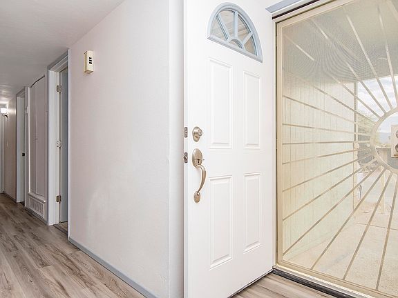 Freshly remodeled with new flooring throughout, new paint inside and outside. New kitchen appliances, new fixtures in both baths and in kitchen. 2 new coats of elastomeric roof coating. New countertops and vanities in both bathrooms and kitchen. New tile walk in shower in Master bath. Replaced all electric devices and new cover plates. New double pane windows. New closet doors. New registers on duct terminations. New front door, new hardware on all doors. New termite inspection with a transferable warranty.
