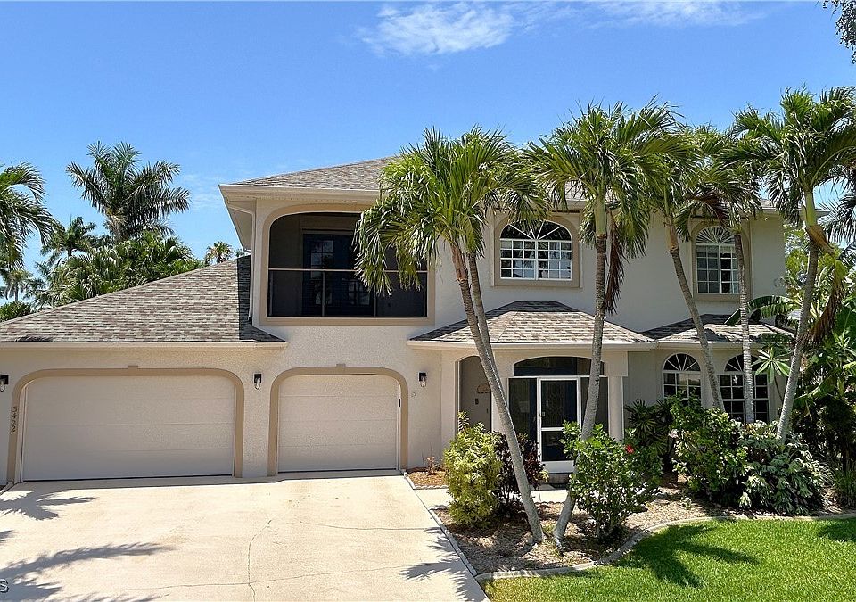 **INCREDIBLE VALUE, PRICE LOWERED TO $499,000! DON'T WAIT FOR IT TO GO PENDING, SCHEDULE A SHOWING SOON!** This is the PERFECT family home in one Cape Coral's desired Gold Coast neighborhoods. Across the street from $Million+ river front properties, this beautiful 2-story, 3 bed + den / 4 bathroom, HEATED pool home is a MUST SEE! This house also comes with a LOW PRICED TRANSFERABLE flood insurance policy. Have extra vehicles, need a large storage or workout area? The massive 29' x 34' 3-stall garage is just what you're looking for, capable of housing 4 vehicles. UPGRADES and CREATURE COMFORTS abound in this home. *NEWER ROOF and A/C SYSTEM *Completely REMODELED kitchen with NEW shaker style cabinets, soft close hinges, stainless steel appliance, decorative backsplash illuminated with mood lighting, Granite counters and waterfall island with ample storage *Spacious great room with soaring volume ceilings & NEWER tile plank flooring. *Upstairs bedrooms separated by a breezeway/loft/play area, highlighted by a custom etched glass half wall with evening mood lighting. *The master bedroom offers its own PRIVATE BALCONY with partial RIVER VIEWS *REMODELED master bathroom with Newer barn door entry, vanity, countertop sink, glass wall shower & fish scale wall tile. *Make the BACKYARD OASIS your ENTERTAINMENT HUB or your place of PRIVACY AND RELAXATION. It boasts a beautiful heated pool with ample pavered deck space for sun bathing and plenty of under truss protected area for your cooking needs, tables and tv viewing area. *NEWER, beefed up pool cage with picture window screens *Mature Royal palm trees line the property, BUTTERFLY GARDEN, and plenty of green space to enjoy, all surrounded by a NEWER Vinyl fence. *A driveway that offers so much room, perfect for the kids basketball games *Hurricane protection for all windows and openings (QUICK AND EASY roll down fabric and individual fabric protection) *NO FLOOD WATER has ever come in the house. Be sure to put this one on your viewing list, you will not be disappointed!