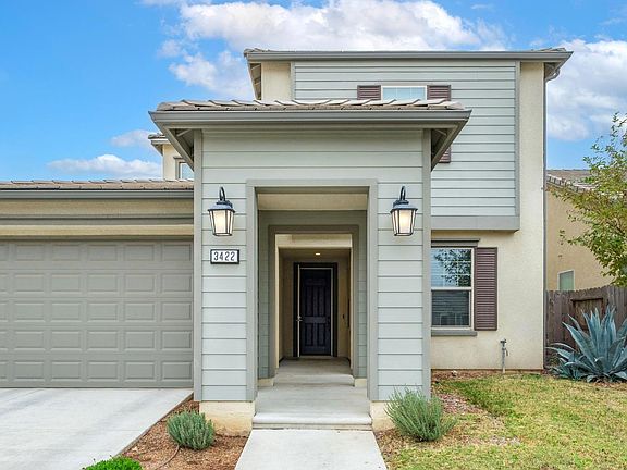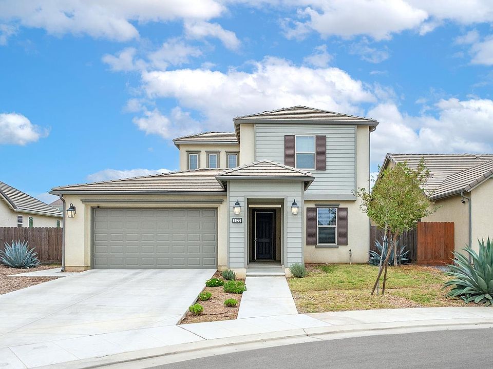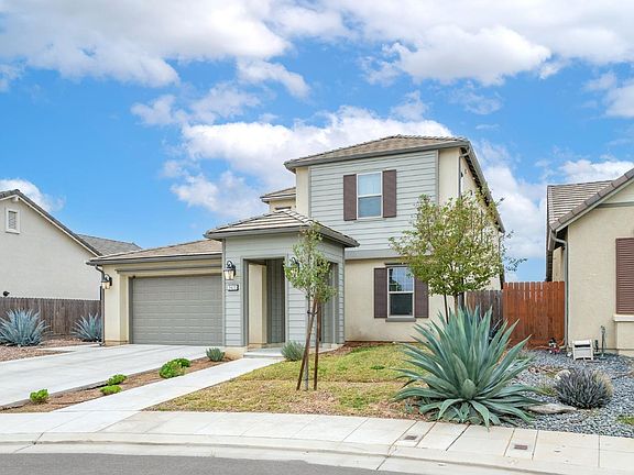 Welcome to modern comfort in this beautifully upgraded home tucked away in a peaceful cul-de-sac within award-winning Clovis Unified School District. Built for easy living and entertaining, the bright open concept layout features a seamless flow from the living area into the stunning kitchen. Oversized upgraded sliding glass doors bring in incredible natural light and create an ideal indoor-outdoor connection to the large covered patio and backyard.The chef's kitchen includes a massive island with bar seating, sleek quartz countertops, abundant cabinetry, stainless steel appliances that stay, and a full wall of windows overlooking the yard the perfect setting for gatherings, cooking, and everyday life.This thoughtfully designed layout features an isolated bedroom on the main floor with a walk-in closet and a full bathroom just across the hall perfect for guests, multigenerational living, or a private office. Upstairs, the expansive primary suite offers space to unwind along with a luxurious bath and oversized walk-in closet. Two additional secondary bedrooms upstairs also feature walk-in closets, providing great storage throughout.Owned solar adds long-term energy savings and peace of mind. Additional upgrades include enhanced insulation, dual-zone high SEER HVAC, and upgraded sliders throughout the main living space for increased efficiency and elevated style.The oversized 2-car garage offers an extended tandem area ideal for storage, workshop space, or a home gym. Outside, enjoy a nicely sized backyard with a covered patio ready for BBQs, birthday parties, and evening relaxation. Low-maintenance front landscaping adds to the great curb appeal of this desirable cul-de-sac lot.Located moments from parks, trails, shopping, dining, and top-tier schools this move-in ready home checks all the boxes for space, privacy, and modern living.