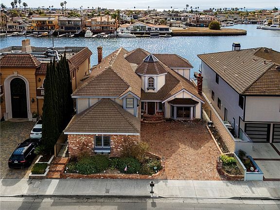 Captivating views crown this stately waterfront residence set along Huntington Harbour’s scenic main channel on Trinidad Island. Generously scaled spaces are beautifully balanced by an abundance of natural light and over-height vaulted ceilings. A collection of formal and informal dwelling areas – encompassing over 4,100 square feet, along with four bedrooms and four baths are delightfully suited for elegant, yet comfortable living. An assemblage of refinements enhance the interior environment, including a dramatic stair; graphic ceiling and architectural detail; stone and hardwoods; three fireplaces; leaded glass; a bonus or games room; a wet bar and an expansive kitchen – ideal for entertaining; and a sprawling primary retreat with a private veranda. Further distinguishing the exceptional offering – garage capacity for three vehicles; a near property width waterfront terrace; and a private boat dock. An extraordinary opportunity to enjoy the Southern California waterfront lifestyle – with optimal proximity to the region’s finest amenities.
