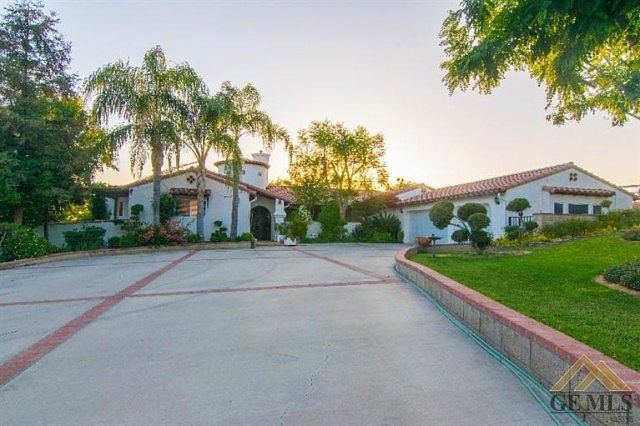 This is a must see, one of a kind house nestled in the hills of East Bakersfield. House with a huge lot! Great land. This beautifully designed home features incredible Spanish style details, with an enormous wrap around deck, and lush landscaping throughout. This home features an outdoor shower connected to the Master, a soaking tub, large courtyard, and an enormous lot. Formal living and dining area, a roman tub, and skylights located throughout the home.
