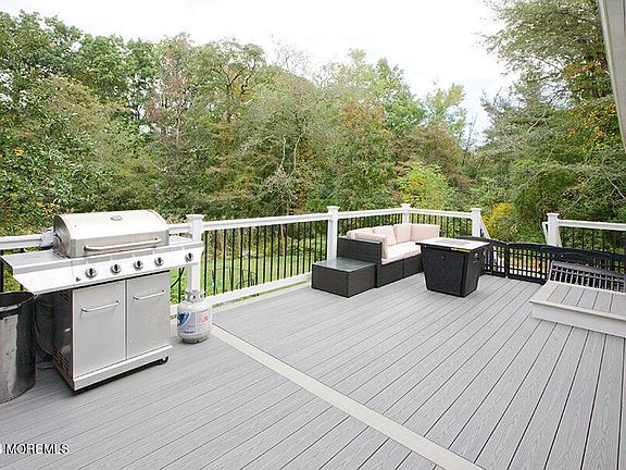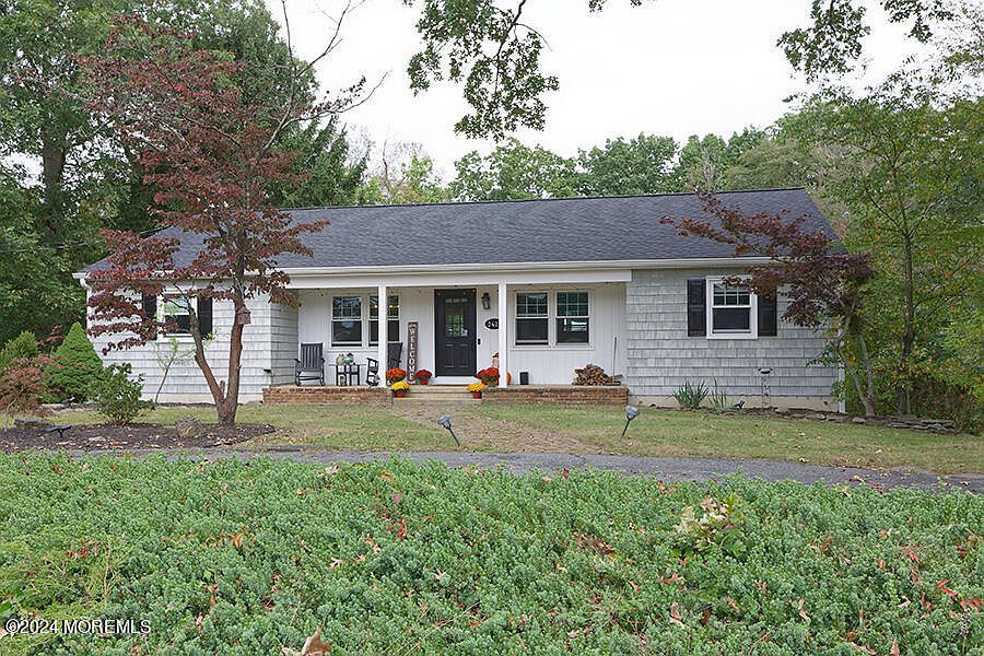 This beautiful 3-bedroom, 3.5-bath ranch is ready for its new owner. Key features include open floor plan, hardwood floors throughout, eat-in kitchen, family room with a wood-burning fireplace and sliding doors that lead to a new deck overlooking private woods and a stream. The home also offers a cozy sitting room and dining area, spacious primary suite with an oversized closet and newly renovated bath, a second bedroom w/ensuite bath. The fully finished walkout basement features a third bedroom, full bath, family room, and rec room, offering the potential for an in-law suite or home office. The garage is currently used as a workshop/game room. Ideally located near Jersey Shore beaches and the NYC bus park-and-ride Don't miss this fantastic opportunity in Wall. Home sold strictly AS-IS