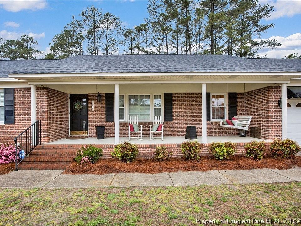 This is a gorgeous 3 bedroom 2 bath home in the highly sought after Jack Britt school district. Garage has been converted to a huge bonus room with its own mini split system and a propane wall heater. Seller left an 8' space for storage in the front of the garage, so the garage doors still open and shut. This could be converted back to a garage if wanted by buyer. This house is pristine. Enjoy the front porch with the wooden swing while you have your morning coffee. The sunroom off of the back of the living room is spacious and has the best views of all the beautiful plants and bushes in the wall maintained back yard. Two storage sheds convey. Granite cabinets in the kitchen and in the hallway bathroom. Carpet in main rooms is in immaculate condition. This home will not last long! Schedule your showing today!