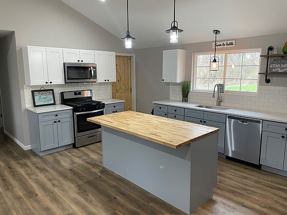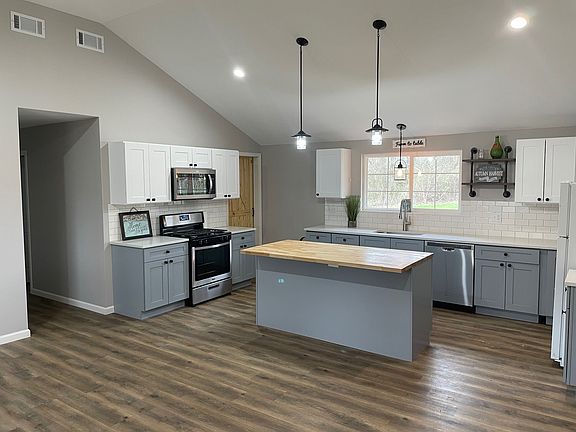 Enjoy this BEAUTIFULLY rehabbed Custer Park ranch style home! Featuring 4 bedrooms and 2 bathrooms, along with that open concept vaulted ceiling floor plan, the moment you walk into the front door! This home was rehabbed from top to bottom with just about everything being brand new! New updated kitchen with upper and lower cabinets, new "butcher block" island, new SS appliances (range/dishwasher and microwave), new doors throughout along with a basement barn door, new flooring throughout both levels, new exterior siding, new garage door, new 200A electrical service ran throughout the house with new panel, the list of "news" and updates goes on and on! New tankless hot water tank, new furnace and central air, new sump pump & battery backup sump pump, two updated new bathrooms! New concrete sidewalk and front porch. Possibility for in-law living with a walk out finished basement, the 4th bedroom and a full bathroom! All of this while situated on a mature treed over 1/2 acre lot, sitting next to a bubbling creek that leads out to the Kankakee River. Flood insurance may be required. Low Taxes! Owner of the home holds an active Illinois Managing Broker real estate license.