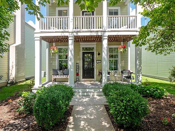 COURTYARD LIFE IN NEW TOWN - must see 2- story with a 2-car detached garage nestled in one of New Town's famed courtyards. This charmer boasts a covered porch with composite floor boards and an upper level balcony that has the feel of your own private treehouse including a fan! True 4 bdrm, with 3.5 baths. Bedrooms include fans and new carpet, baths have been updated with solid stone counters. Renovated kitchen has beautiful white cabinets and granite countertops, plus brkfst bar, plus butlers pantry! Discover wonderful features like a newly added electric fireplace, wainscoting in one bdrm and 2nd flr laundry. Finished LL includes expansive bdrm with walk-in closet and en-suite bath. Not to mention, the potential family room or office with hardwood floors. In addition, home includes all of the marvelous amenities New Town has to offer; 2 pools, endless stocked lakes, bocce ball courts, sand volleyball, free concerts and movies at amphitheater.