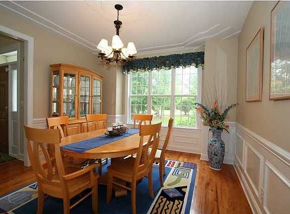 Wonderful home behind the Gates of Dunes West on 1.2 acres of privacy! A spacious floor plan with 5 large bedrooms and a 788 Finished Room over the garage that could be a 6th bedroom. Beautiful wood floors greet you as you enter the home. The Dining Room with wainscoting and tray ceiling are on the left and a Living/Office space on the right. The view pulls you to the back of the house and the spacious den that is open to the large eat-in kitchen! The Den and Kitchen have hardwood floors to keep the space clean and flowing. The Den has a gas fireplace with plenty of built-in bookcases for your personal treasures, There are French doors that open onto the screened porch from the den. In the bright Kitchen you will find gleaming white cabinets with striking black granite countertops! Tons of storage including the Center Island, Double Pantry, and lots of Cabinets, and a breakfast area overlooking the deck and back yard, Watch the deer from your kitchen window. The large master bedroom on the main floor has a vaulted ceiling and opens onto the sunny deck with views of the private back yard. The master bath includes separate shower, Jacuzzi tub, new tile floors and his and hers vanity with new granite counters. . Upstairs is another world with 4 good size additional bedrooms and 2 updated baths! Must see the size of these bedrooms to appreciate them. Everything feels comfortable and roomy. In addition to the 4 bedrooms upstairs, there is a split recreation area of 788 square feet that has closet space an could be another bedroom or additional space for creative needs. There is one more interesting space in this house, it is tucked away behind a door and would make a great sewing center or place to keep scrapbooking materials. From this hideaway nook, there is a walk up stairwell that leads to a FULL ATTIC!!! This is one more of the many amazing features in the awesome home. The play house in the back yard has electricity run to it and is a great place to have lots of fu