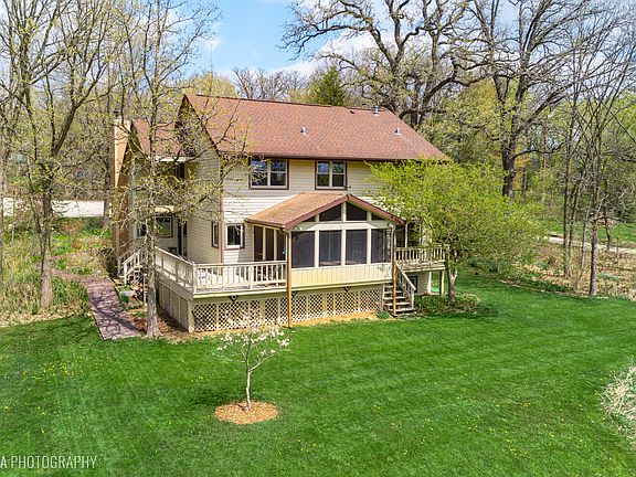 Nestled on a tree-lined street leading to a quiet cul de sac, you will love this home's location on the North side of Crystal Lake's lush, picturesque Curling Pond Woods. Stunning curb appeal, beautifully landscaped, and home to many native Illinois prairie wildflowers and plants, on just over an acre and a half you will find splendor in every corner of this home's unique lot. Enter the home through the warm, welcoming two-story foyer. Enjoy family time and entertaining in the spacious gourmet kitchen and family room lined with sliding doors overlooking the deck, screened porch, back yard, pond and much of the 40-acre preserved land adjacent. Cozy up in the living room to enjoy the views or spend time near the fireplace. Upstairs you will find 4 large bedrooms including a primary suite with private primary bath, with soaking tub and separate shower, and his and her walk-in closets. The second story also boasts a loft overlooking the first floor perfect for so many uses, a home office, library, kid space, and so much more. But that's not all! You will want space to enjoy the outdoors and there is no lack of it. Be amazed by the wrap-around deck and screened porch perfect for taking in all the views over morning coffee, evening dinner or time with family or friends. There is so much extra room in the partially finished basement with a work room, and plenty of storage. There is so much more to love with hardwood flooring, updated lighting, stunning staircase with and railing, and brilliant open concept floor plan. Backs to approx. 40 acres of preserved land owned by the HOA with walking trails from end to end. Award winning schools including Prairie Ridge High School. Feel like you've escaped it all and still be close to shopping, dining, parks, walking paths, Metra, downtown, the lake and so much more. There is nothing to do here but move in and ENJOY!