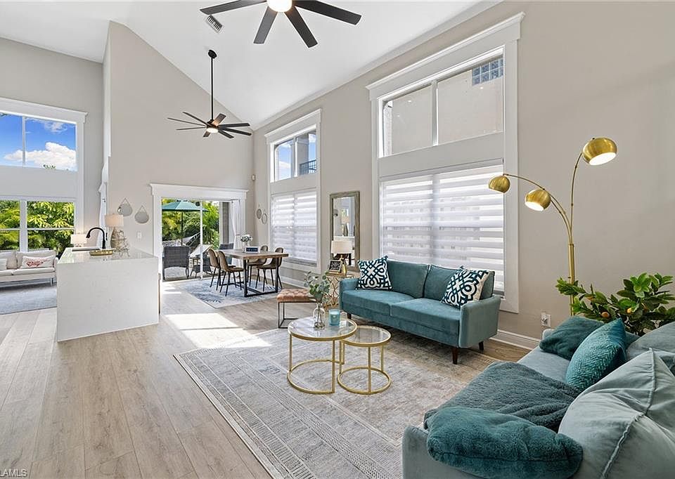 Step into luxury living with this immaculately updated and upgraded home nestled in the prestigious Bougainvillas of Queens Park neighborhood, just moments away from the heart of downtown Naples. Upon entering, you're immediately enveloped in a sense of serenity and space, thanks to the bright, open floor plan enhanced by soaring vaulted ceilings. Boasting over 1,900 square feet, this residence offers ample room with four bedrooms, two full baths, and a beautiful powder room on the main level. Recent renovations have elevated this home to a new level of sophistication, featuring new flooring and a state-of-the-art kitchen adorned with sleek white shaker cabinets, luxurious quartz countertops, and top-of-the-line Samsung appliances. The fully renovated baths have been meticulously crafted to exude a contemporary elegance, elevating the overall aesthetic of the home. Each bath showcases modern design elements and high-end finishes, creating a luxurious atmosphere that seamlessly blends style with functionality. Step outside to discover your own private oasis, complete with a fully fenced backyard encompassing an above-ground spa, perfect for rejuvenating your muscles after a day of golf or pickleball. Whether savoring a morning cup of coffee or hosting a barbecue with friends and family, the outdoor areas provide versatility and comfort for relaxation or entertaining guests. Conveniently located near US-41, this residence offers easy access to an array of amenities, including shopping, dining, and the picturesque Old Naples area with its renowned white sand beaches.