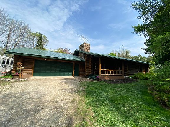 FULL log home situated on 15+ acres! Stunning red & white pine logs make the structure of this home. This home features 3'-4' eves, new metal roof and beautiful vaulted ceilings. Enjoy your stone FP with a wood burning insert from the LR, kitchen or dining with an open floor plan. The 15+ acres features a 2 story insulated/heated shed/horse barn, pond, additional shed, horse shelter and 4 food plots. You'll experience wildlife abounding around with deer, turkey, ducks and more! Huntable land includes 2 man deer blind. The dining features patio doors that step out to your newly finished deck over looking your property with trees of many different species. Finished walk-out lower level has 3rd bedroom, full bath, office and family room with bar. No worries, home inspection already complete!