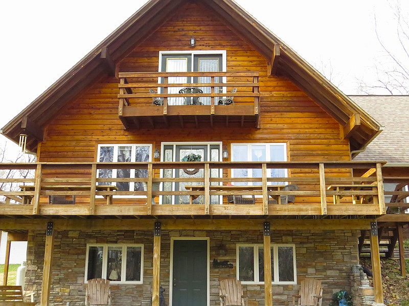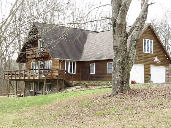 A3859 - 3423 Millerfield Rd., Russell Springs (Adair County)This rustic cabin style home is a one owner built around 2001. House appears extremely well cared for and is situated on 6.19 acres m/l, partly wooded with stream, fenced garden area, and a 28 ft. X 38 ft. detached garage having 3 overhead doors and another 12 ft. X 28 ft. open bay. This custom home has many architectural features including cedar siding, two bay-style windows, and a daylight basement with rock facade and cozy porch. House has 3 bedrooms (including a master suite), 2 full baths, kitchen/ dining room combination with oak cabinetry and appliances included, living room with gas log fireplace, main level utility room, full finished basement with extra bedroom-large storage closets-large family room with fireplace and more! Other amentias include a 2 car attached garage, some decorative ceilings, some hardwood flooring, blacktop drive with turn around, wrap-around deck overlooking stream, 2 central heat & air units and just minutes to Green River or Lake Cumberland. The detached garage is fully insulated, has concrete floor, full electric, and has its own heating and cooling unit. Call today!