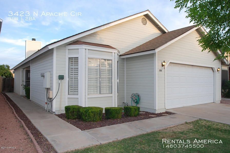 Wonderful 3 bedroom, 2 bath, 2 car garage home in Chandler! Step inside to an open, great room floor plan with vaulted ceilings, plant shelves, and plantation shutters. The family room features a cozy fireplace and French doors that lead out to the covered patio where you can enjoy a private, beautiful backyard that backs to a common area, so no neighbor behind! Nice size kitchen with breakfast bar, flattop stove, stainless steel sink and faucet, breakfast nook with bay window. The spacious master bedroom offers walk in closet and bath with dual sinks. This is a wonderful place to call home in a North Chandler location that is close to parks, shopping and freeways! Available NOW Application Fee $45 per adult;nAdministrative Fee $200;n1 Pet Only, Pet Deposit $300;n1.5% City Tax;n2% Monthly Admin Fee.n 12 Months Disposal Dryer Garage