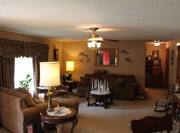 Welcome to this rural home that is just minutes a number of major retail stores. This charming home has so much to offer, such as a roof that is only a few years old and block construction. The living room is very spacious as well as the large master bedroom with a wood stove. It is currently being used as an office. You will also find a charming gas fireplace in the living room. The kitchen features a large pantry cabinet and ample storage. Sitting at the dining table you will gaze out overlooking the spacious patio and beautiful landscaping throughout the yard. The back yard and front both feature irrigation systems. The over sized garage will hold four cars and is loaded with storage room. There is a separate workshop in the backyard that features a charming potbelly wood stove and is wired for 220. There is also a nice sized wooden shed and a wood play set. Inside the home you will love the natural hard wood floors and newer carpet. This home has so much to offer and will not last long at this price. Bring your offers!