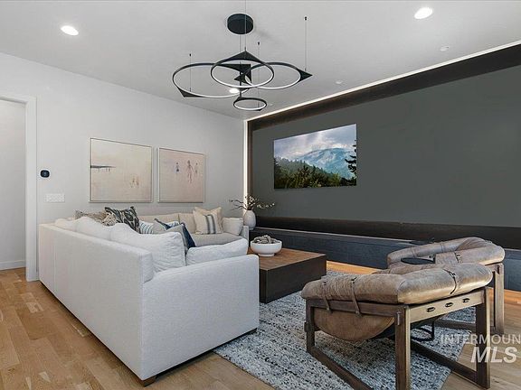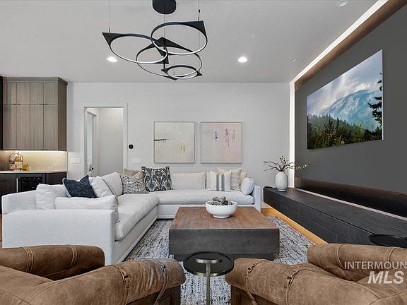Experience Eagle's Finest Living with this gorgeous modern masterpiece in Lakemoor! Adjacent to the Boise River Greenbelt, this home is better than new with beautiful window coverings, top-of-the-line appliances, and exquisite finishes. Relax and unwind in your main-level primary suite complete with a beautiful soaking tub, walk-in shower, heated floors, and oversized closet. A chef's dream, the gourmet kitchen boasts quartz countertops, Wolf Signature Suite Appliances including a steam oven and built-in refrigerator, and gorgeous white oak hardwood floors throughout. Ascend the floating staircase to an open loft designed for entertainment with a built-in bar and wine fridge or enjoy your favorite movie in your private theatre room. Three additional bedrooms, a full bath, and a patio with views complete the second floor. Lakemoor's gated community amenities include 2 pools, tennis and pickleball courts, and an elaborate trail system with access to the Boise Greenbelt and Eagle's finest dining and shops.