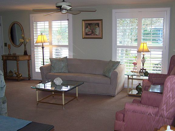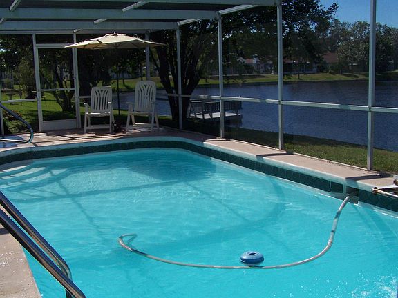 2-3 BR, 2 BA, 2 CG, New Roof - 2018. Spacious Pool Home on Lake. LR w/floor-length plantation shutters open to DR. Well-kept modern Kitchen. Large MBR suite w/walk-in closet. 2nd BR overlooks pool and lake. Good-sized Den/or possible 3rd BR, plus enclosed Florida Room for parties and family fun leading to 12 x 24 ft. in-ground pool w/screened lanai. Thermo-pane upgraded windows, Central Heat/AC. Tastefully decorated and furnished including custom window treatments. Low taxes - No HOA.