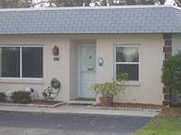 A Golfers dream! Look no further! Great location in Seven Springs Country Club, on the 4th fairway sits this lovely,bright, Doral end unit! Freshly painted, sparkling clear updated ceramic tile, eat in kitchen, large living/dining room combo with warm, wall to wall berber carpeting boasts large window in dining room that indirectly looks over scenic golf course and pond, newer thermo pane windows throughout. Large master bedroom has lots of closet space, master bath has easy walk in shower. In the large 2nd bedroom closet you will find convenient washer/dryer that makes laundry day much easier! Clean hall bathroom has a tub/shower. The private patio allows you to enjoy the serene golf course and great outdoors. The community boasts amenties galore! 2 golf courses, 2 pools, tennis, fitness center, club house and more. Close to restaurants, shoppings, hospitals, schools, beaches and the Suncoast Highway. Sellers are motivated! Make this a must see and make a offer!