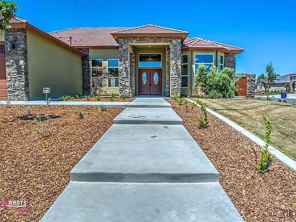 This northwest Bakersfield new home has 4 large bedrooms, and 2 1/2 bathrooms. Great room open to the kitchen, and dining rooms! Kitchen with island bar, stainless steel appliances, granite counters, and stainless steel sink. The luxurious master suite is a dream! Very large bedroom with sitting area, and a master bath you can't help but to fall in love with! Separate spa tub and large shower, double sinks, and large walk-in closet. Some amenities of this lovely home are huge corner lot with block wall fencing, 3 car garage w/ 8' doors, RV gate, travertine tile flooring, granite counters, custom cabinetry, and pre-wired for central vac and surround sound.
