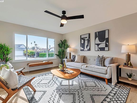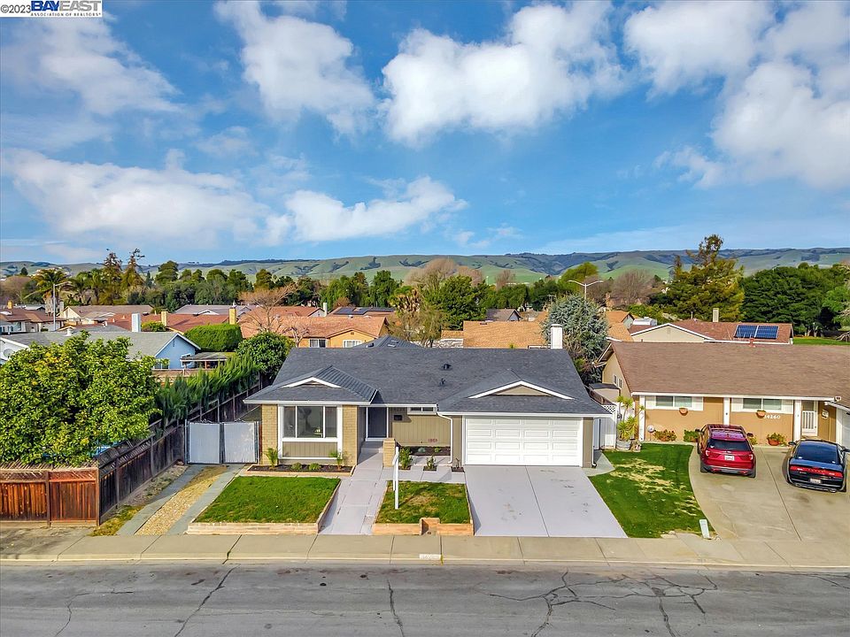 Situated in a quiet cul-de-sac and boasting great schools (10/10 test scores for all three), this beautifully renovated home with top-notch finishes is located in one of the most desirable neighborhoods in Fremont. It features four bedrooms, two bathrooms, and 1,504 square feet of living space. The kitchen has been completely updated with new shaker cabinets, quartz countertops, a backsplash and stainless steel appliances (gas stove)! The home has a very spacious primary suite, as well as three large guest rooms. Both bathrooms have been fully renovated with new vanity sets, light fixtures, shower/tub, tiled floor and surrounds. The separate, spacious, and light-filled family room with a fireplace is perfect for gatherings. The backyard offers plenty of space for gardening and playground equipment, and it features a large gate that allows complete access from the side yard. Other wonderful features include new interior/exterior paint, new light fixtures, new Pergo flooring throughout, an updated garage, a new roof, new gutters, a new central furnace, and so much more! It is located very close to the Alameda Creek Trail, parks, schools, shopping centers, HWY 84/Dumbarton Bridge, and I-880. Open house on Sat and Sun from 1-4pm.