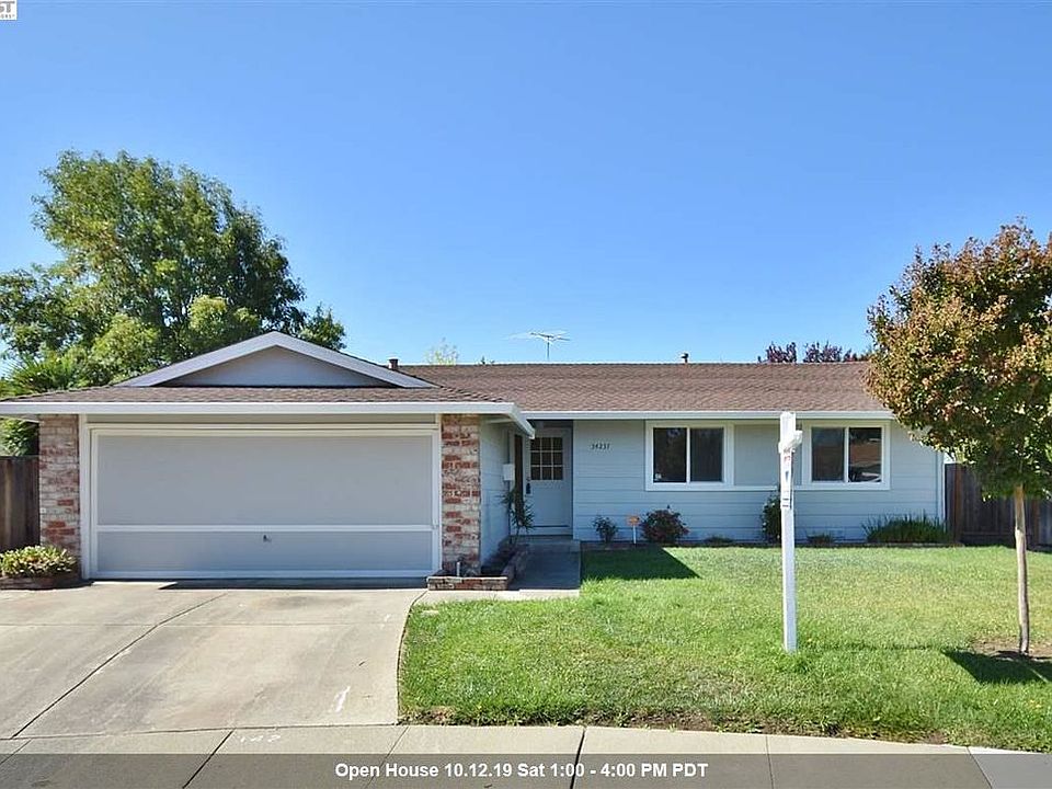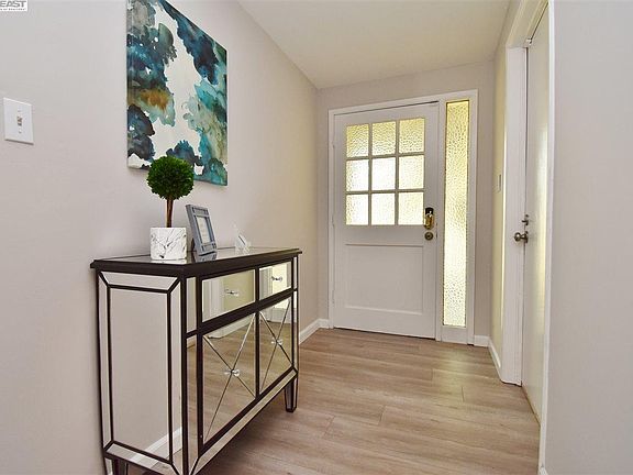 Remodeled and move in ready! Interior and exterior freshly painted in popular, neutral colors and popcorn ceilings removed. New laminate flooring throughout. Kitchen remodeled several years ago with new cabinets, quartz counters, SS appliances, refrigerator included. Breakfast bar separates kitchen from dining area and familyroom. Slider to rear yard. Dual pane windows. Step down livingroom with fireplace. Hall bath has new tile shower, new vanity and new tile flooring. Masterbath updated several years ago with new shower, vanity and flooring. Well situated lot on cul-de-sac. Warwick elementary school. E-Z Commute close to 880, Dumbarton & BART.