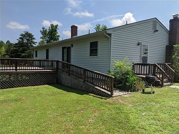 Come home to this cozy one level living with so much to offer! Living room with brick surround fireplace and newly installed laminate wood floors, throughout. Sliding Glass doors off the dining room opens to an oversized deck with ramp overlooking private wooded backdrop, perfect for entertaining! 3 bedrooms, family bath, and master bedroom with upgrade sink, toilet, and garden tub all featured in black! Ceiling fans throughout! Recently painted interior. New mailbox. Two sources of heat. Heat pump and oil back up! All of this PLUS is situated on 3.79 acres of land!! Just the one you have been looking for! EZ to show and lots to offer! Also working washer, dryer & refrigerator convey ** Home Warranty for your buyer, too! Call to show today!