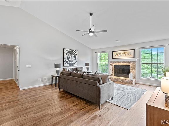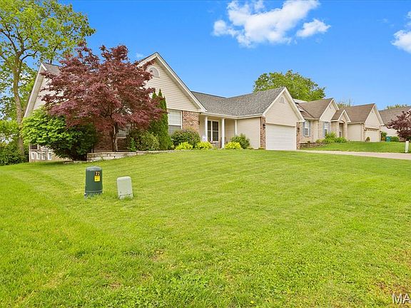 Dreaming of a backyard with a water view?? You just found it!! Welcome home to this bright & beautiful 3-bed, 2-bath Ranch that's bursting w/ charm. The stunning kitchen boasts granite counters, white cabinets, SS appliances, sunny breakfast room & huge walk-in pantry. Get cozy in the vaulted living room featuring gas fireplace & loads of natural light and host memorable dinners in the formal dining room. Need a home office or extra hangout spot? The versatile den has you covered! The spacious primary suite has bay windows, walk-in closet & luxurious bath w/ separate tub & shower. Convenient main-floor laundry and oversized 2-car garage complete w/ built-in storage/workshop area round out the main level. Outside, relax on the peaceful patio overlooking a tranquil pond. The mostly unfinished basement is perfect for creating even more living space, home gym or the ultimate movie room. Francis Howell Schools!! Come see it in person at the Open House: Sunday, May 4th, 1–3 PM!