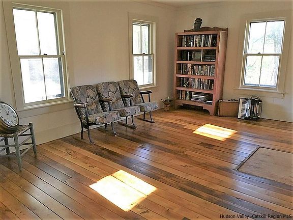 Cute as a button 1920's farmhouse is an actual hop-skip-and-a-jump to the center of Stone Ridge! This little charmer has a great country kitchen with beautiful built in cabinetry, a formal dining room and bright open living room with original gleaming hardwood floors, a generous sized mudroom, a glass enclosed front porch and 3 good sized bedrooms upstairs. An exposed brick chimney, wainscot and shiplap walls and ceilings, and many other period correct details are blended here with the creature comforts of radiant heat (main level) and sexy modern radiators upstairs to give you the feel of yester-year with the efficiency of today. Add to this a simply serene and beutifully landscaped back yard and a long gravel driveway to a spacious and newly constructed studio/workshop building and you have it all! All this walking distance to stores, restaurants, the library and more. The