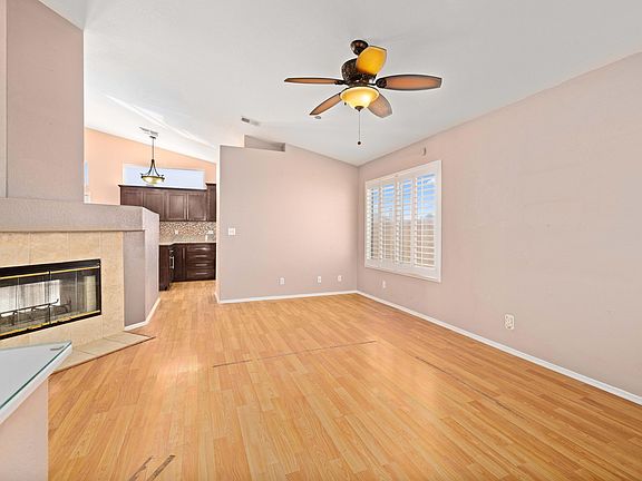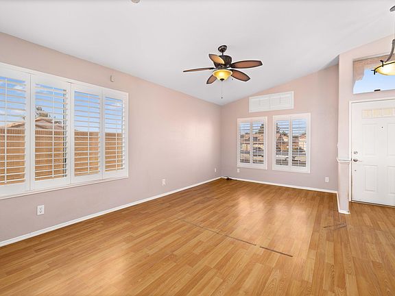 You'll feel at home as soon as you cross the threshold of this captivating 5-bedroom, 2-bathroom property. The atmosphere is illuminated both by plenty of sunlight and by contemporary fixtures. The eye is drawn to vaulted ceilings, which add spaciousness and promote a comfortable airflow. The efficient gas fireplace will be the heartbeat of many living room gatherings, or serve as the centerpiece for a few minutes of solitary tranquility. The kitchen is recently updated, and features inspiring counter space and major appliances. It is in the popular peninsula layout, which creates ample space for food prep. As a retreat to relax at night and recharge for tomorrow, the newly updated main-floor master bedroom is where to be. In addition to the convenience of the private bathroom (walk-in shower), you will find plenty of walk-in closet space to let your wardrobe breathe. The other 4 bedrooms, with plenty of closet space, also offer the convenience of ground floor accessibility. With fencing in the rear, the large yard offers privacy and room for enjoyment. A driveway with ample accommodation for two vehicles leads to an attached two-car garage that is available for its original purpose or for use as additional flex space. Welcoming you or your visitors as they approach, a breezy porch is a structural greeting to passers-by and a nice spot for relaxing with beverages, whether morning coffee or twilight nightcap. From the front door on a low-traffic corner lot in an area where the streets are framed by sidewalks and trees, the home is within pedestrian range of various shopping and dining destinations. In addition, the location is within pedestrian range of nearby schools. While enjoying spectacular views of the mountains, it's easy to forget that one of the home's most valuable features is not apparent to the eye: the extra personal time offered by the pleasant commute to Edwards AFB. This captivating abode is a rare Rosamond charmer.
