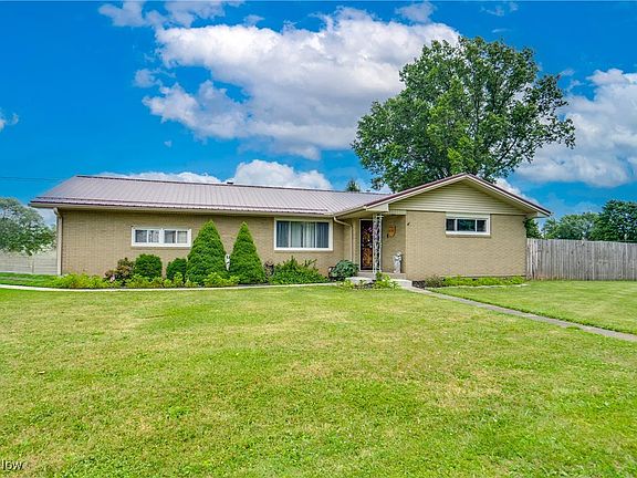 Welcome to this charming two-bedroom, 1.5-bath ranch situated on a spacious double corner lot. As you step inside, you'll be greeted by a large living room with a picture window that fills the space with natural light. Adjacent to the living room is a cozy dinette, open to the kitchen, which features ample counter and cabinet space for all your cooking needs. Down the hall, you'll find two bedrooms, including the master bedroom with convenient access to a half bath. The second bedroom is generously sized and can be easily converted back into a third bedroom if desired. Completing the main floor is a fully remodeled bath. The lower level provides plenty of additional living space, including a rec room with a bar and fireplace and a 2nd kitchen with fruit cellar nearby. 2 bonus rooms can serve as storage, craft room, home office or additional bedroom. Closed in porch area with tv and wood burning stove is easily used year round. The exterior of this property is truly remarkable, with two parcels included. The home sits on a corner lot with a paved driveway leading to a two-car attached garage. The expansive backyard has a standout feature boasting a 30 x 40 heated pole building with water, electric, concrete floor, storage shelving and hot tub. The landscaping is lovely, with many perennials throughout, so you don't have to flower annually - easy to maintain. There is also a dedicated area for a garden. Plus, the home is minutes from US-62, shopping, and parks. A one-year home warranty is also provided for your buyer's peace of mind! Don't miss your chance to see this fantastic home; schedule your showing today! (HWT, softener, and furnace 2021, AC 2023, Roof 2019, 200 Amp service 2022, Well Pump and Tank 2021)