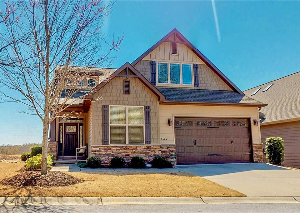 Bright, beautiful home offering stunning views and low-maintenance living in one of the Upstate's premier golf communities. Overlooking the 18th fairway and green, this Cross Creek Cottage is situated on an end parcel for added privacy and is an easy stroll to the clubhouse, pool, and practice area. Less than 5 years old, the immaculate home features 9-ft ceilings, a stone fireplace with gas logs, large master on the main level, spacious patio overlooking the course, and 2-car garage. In addition to the master suite, a second bedroom is located downstairs and could be used as a study or home office. Another full bathroom, laundry room, and storage area are located on the main level. Upstairs you'll find a large family/bonus room offering plenty of flexible space. The upstairs bedroom boasts the best views in the home and is flooded with natural light. A whole-house water softening system was added by the current owner. Easy to show. Book your appointment today!