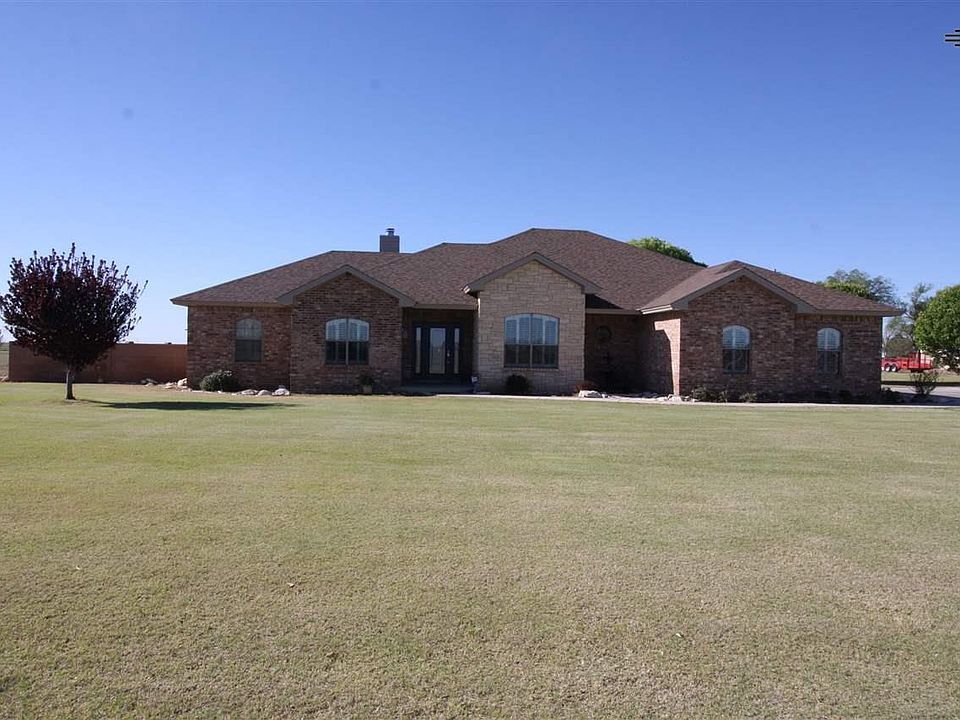 Beautiful brick home, built in 2005 on one acre located at the Country Club outside of Lovington. 3 bed, 3 bath. Great room with fireplace open to kitchen. 10 foot ceilings! Lovely sunroom open to living area. Formal dining room, spacious kitchen with eat-in area, island, large walk-in pantry, granite counter tops. Office off of entry area. Separate master with sitting area and French Door patio access. Master bath has double vanity, jetted tub and separate shower. Utility/laundry room with linen closet. 3 car garage with side entry. Cement block fence, covered patio, sprinkler system front and back, watering system for flower bed. This is a country property with it's own water well and septic system. ON THE GOLF COURSE!!!