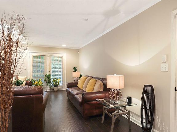 Essex House, where the living is easy! Gated Vinings swim, tennis community! This lovely updated traditional 2 BR, 2BA condo boasts engineered floors throughout. Fireside living room opens onto a spacious balcony with custom tile flooring. Separate dining room and large open kitchen is perfect for entertaining. Master bedroom easily accomodates a king-sized bed and double closets allow for plenty of storage. This unit is located near the pool and the dog park and you feel like you have your own private resort view. Call today to view!