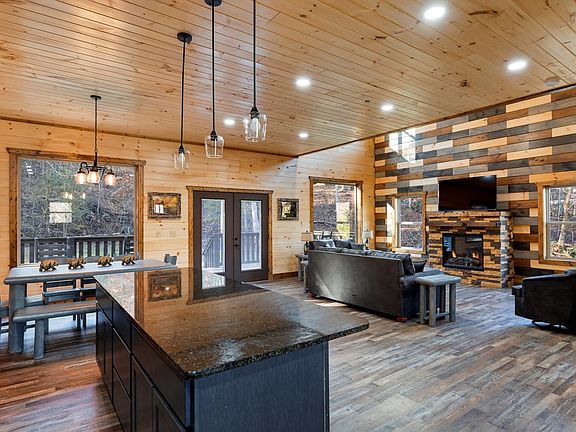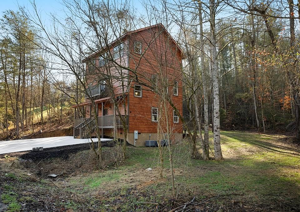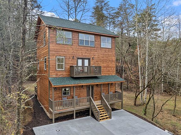 3 bedroom/3.5 bathroom new construction cabin with large lot and mountain view! No steep roads and completely paved within 25 minutes of Pigeon Forge and 30 minutes of Gatlinburg. This cabin has three levels and tons of square footage! On the main level, you will find a large living area with cathedral ceilings that is open to the dining room and kitchen. A double door leads to the back deck and tons of level outdoor space that has been partially cleared and is ready for a fire pit, outdoor games or a swim spa! A half bathroom, washer/dryer connection, and fireplace completes the main level. On the 2nd floor, there are two bedrooms with their own private bathrooms. Each bedroom has it's own private balcony, sitting room, and walk-in closet. On the top floor, there is a game room with large windows to check out the mountain view, private movie room, and another large bedroom with its own private bathroom, sitting area and balcony. This cabin has tons of oversized windows throughout that let in plenty of natural light! [Drone photos used in this listing]