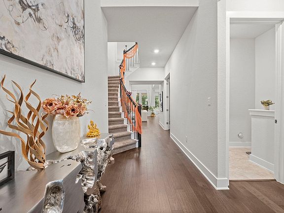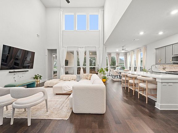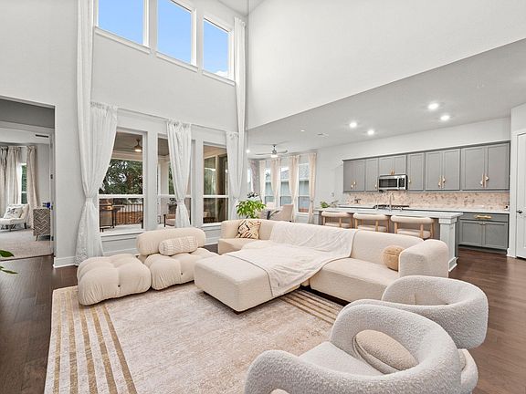 Welcome to this stunning Taylor Morrison home in the highly desirable Bluffview community! Built in 2021, this 4-bedroom, 4.5-bath residence offers 3,265 sq ft of thoughtfully designed living space with timeless curb appeal and modern elegance. From the moment you arrive, the home’s clean architectural lines and beautifully maintained exterior set the tone for what awaits inside. Step through the foyer to find a private office with French doors and a convenient powder room. A spacious guest suite with full bath is also located on the main level. The heart of the home is the dramatic two-story living room, showcasing soaring ceilings, walls of windows, and a sleek fireplace that serves as both a focal point and a cozy retreat. The open-concept layout flows seamlessly into the chef’s kitchen, complete with a large island with bar seating, stainless steel appliances, gas cooking, abundant cabinetry, pantry, and stylish finishes. Adjacent, the bright dining area offers backyard views and natural light that enhances the warm, inviting design. The first-floor primary suite impresses with oversized windows, a spa-like bathroom featuring a double vanity, a linen closet, and a spacious walk-in shower. Upstairs, a versatile landing serves as a second living space or play area, complemented by a dedicated media room perfect for movie nights. Two additional bedrooms, along with two full baths, complete the upper level. Enjoy outdoor living on the private covered patio with ceiling fans and gas hookups for grilling. The level backyard is ideal for play, gardening, or simply relaxing. Bluffview residents also enjoy access to community amenities including a pool and sport courts, all just minutes from HEB, shopping, and dining. Don’t miss your chance to own this exceptional home combining architectural beauty, functionality, and comfort in one of Austin’s premier neighborhoods! Buyer to confirm all MLS data to their satisfaction.
