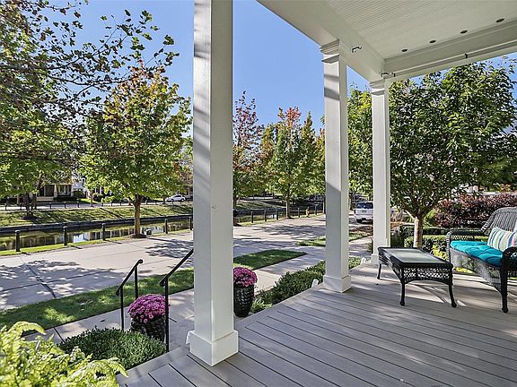 Immerse yourself in the natural beauty of the water view that can be enjoyed from the comfort of your covered, composite veranda. Over 2000 sq ft of finished space, 3 bdrm, 3 full bath RANCH home on one of the most desired locations in New Town. Open floor plan w/ 9' ceilings, gorgeous hardwood floors, crown molding & electric fireplace. Kitchen features QUARTZ countertops, chic backsplash, WHITE custom cabinets, PANTRY and dining area. Nice size master bedroom w/ walk-in closet, bath w/ dual vanity, separate shower & soaking tub & door to the gorgeous outdoor patio. 2 add'l bdrm w/ one having custom shelving, full bath & laundry room. New carpets in bedrooms. Walk down to lower level & enjoy the huge rec room w/ kitchenette, full bath & bonus rm. New VINYL PLANK flooring. Huge storage area. Backyard can be a tranquil retreat &/or entertaining area w/ composite decking on one level & pavers on next level. Installing NEW ROOF! You will LOVE all the amenities that New Town has to offer!