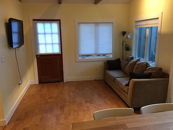 Partially furnished high efficiency 1BD, 1BA Irvington cottage with full kitchen and loft. On demand hot water, heat pump AC/Heat, and LED lighting throughout. Large storage garage with bike hooks. Owner pays for garbage/recycling. Tenant(s) pay $25/person per month for water/sewer directly to owner. Tenant is responsible for all other utilities (power/cable).
