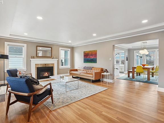 Nestled on a picturesque, tree-lined street in the coveted Beaumont/Wilshire neighborhood, this inviting home blends classic character with modern updates. A welcoming front porch sets the tone, leading into a light-filled living room featuring gleaming hardwood floors, tray ceilings, and a cozy gas fireplace. Through a graceful archway, the dining room offers the perfect space for gatherings, conveniently located across from the open plan chef’s kitchen. Designed for both function and style, the kitchen boasts quartz countertops, a stylish tile backsplash, stainless steel appliances, a gas cooktop island with bar seating, and seamless access to the backyard and patio—perfect for al fresco dining. Two main-level bedrooms with hardwood floors flank a beautifully appointed full bath, a double quartz vanity, and a luxurious soaking tub. Upstairs, the private primary ensuite is a serene retreat, featuring new carpet, two charming alcove areas ideal for a home office, a reading nook, or a dressing room, and a well-appointed bath with a glass-enclosed shower and heated floor. The finished, light-filled lower level is a delightful surprise, offering a spacious family room, game room, and laundry room. A fourth bedroom with French doors and a full bath with a hexagon radiant heated tile floor, granite vanity, and glass-enclosed shower with a rain head provides for an ideal guest space or private retreat. Step outside to the fully fenced backyard, a haven for entertaining and relaxation. Enjoy top-rated schools, a vibrant community, and all the charm this desirable neighborhood has to offer with its walkable Beaumont Village and Wilshire Park at its core. Don’t miss this incredible opportunity to call Beaumont/Wilshire home! [Home Energy Score = 4. HES Report at https://rpt.greenbuildingregistry.com/hes/OR10192380]