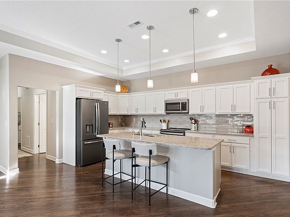 Executive Zero Entry Stand-Alone “Promenade” Townhome located in the charming 55 plus Courtyard of Shadow Creek Villa neighborhood. Enjoy the open concept living area with expansive windows offering tons of natural light. The kitchen offers a center island with seating, quartz countertops, executive cabinets and under cabinet lighting and large walk-in pantry. A large dining area off of the kitchen is perfect for family get togethers. The living room features a beautiful gas fireplace and walks out to the patio. The grand Master Suite has a tray ceiling, sunroom, walk in closet and 3/4 bath with tiled, walk-in shower and dual vanity. The home also features a front office area, second bedroom and bathroom, laundry room, and a drop zone off of the garage. The fenced yard and patio is the perfect area for entertaining guests or enjoying the beautiful landscaping. The garage, courtyard, and sunroom has upgraded stamped concrete. Walkable, lighted attic with antenna. Water softner and filtration system included. Great location, walking distance to the community center which features an outdoor pool, exercise area, and activities. Located near shopping, great restaurants and easy access to the interstate. Enjoy maintenance-free living!