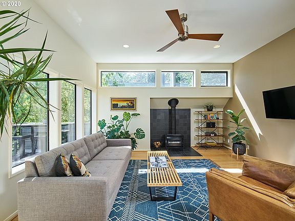 Stunning contemporary in Willamette Heights! Privacy just steps away from trails, parks and 23rd Ave. Amazing rooftop deck with soaring views of Northwest. Master suite with huge walk-in closet and private deck with hot tub. Master bath with dual rainfall shower heads, heated floors and a soaker tub. Chef's kitchen remodeled with Viking range and LR flooded with light. Oversized bonus space with high ceilings. Garage is wired to be a workshop for hobby or business. Sought after neighborhood.