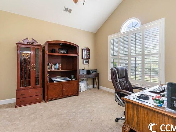 Incredible value for this beautiful Brick and Stucco front home tucked away on a quiet cul-de-sac in the sought-after Farm @ Carolina Forest Community. If you're looking for LARGE rooms with TONS of flexibility this is the. property for you. On the first-floor front of the home enjoy a large formal dining room with huge windows for tons of natural light. On the other side of the front entry, you'll enjoy an ample sized office with glass pane door and vaulted ceilings. This room could be the 5th bedroom. A full bath with tub/shower combo separates the office and bedroom #2. A very large Bedroom #3 is further down the hallway and could easily be used as a 2nd Primary Bedroom with wood floors and private full bath with stand- up shower. The great room has wood floors, beautiful fireplace and tall ceilings giving a open but comfortable feel. The kitchen has ample storage with 42" cabinets and you can enjoy the convenience of an eat-in breakfast room. There is a large Carolina room on the back side of the living room that's currently being used as an office but would make a wonderful game room, TV room, billiards room (formerly housed a pool table) and you have tons of natural light with a wall of windows on the back. The primary bedroom offers tons of space, a gorgeous fireplace and HUGE vaulted ceilings an ensuite bath with dual vanities, garden tub, and separate shower with walk in closet. Upstairs there is a bonus room that's being used as a theater room and the seller is leaving the projector and screen so you can begin having movie nights right away! Outside you'll find a large private yard with plenty of room to expand the current patios add a pergola etc. Amenities include an 8000 square foot pool with clubhouse, a smaller pool, fitness room, basketball courts, playground, and more. Great location, minutes to the beach...close to shopping, dining, golf, Broadway at the Beach, Myrtle Beach International Airport, Highway 31, Ocean Bay Elementary and Middle schools, and so much more!