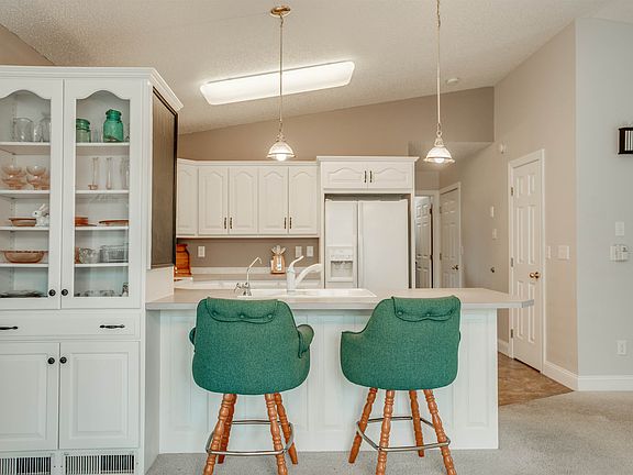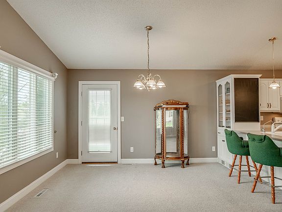 Checkout this Ranch style twin home in a great 55 plus community! The front door walks into a bright living room with vaulted ceilings. The living space is open to the kitchen and dining with a door out to the deck. Just down the hall is a main floor laundry room, full bath, bedroom, and a master suite with large walk in closet and master bath featuring walk in lower level family room has doors leading out to a patio. There is potential for a 3rd bedroom in the lower level, also a half bath that could have a shower added. You will also find a large storage room that would be a crafters delight! The home has a double garage, steel siding, deck, and a patio that looks out to the southwesterly view. Call for appt. to see this great property.