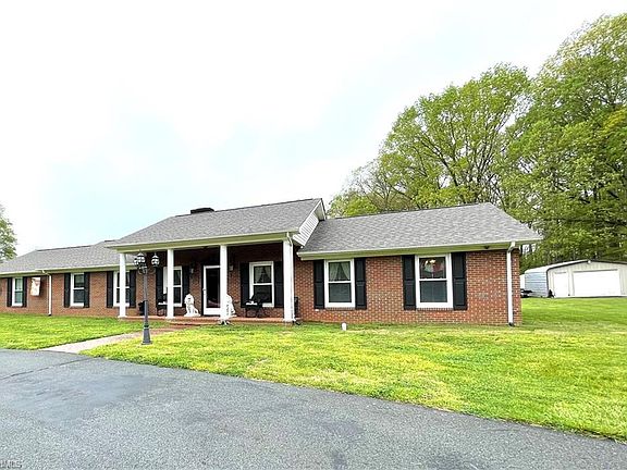 This is the 1 level ranch style home you have been waiting for! 1+acre, 3 bedroom / 2.5 bath home in the perfect location of Stokes County. Inviting open kitchen/breakfast area with beautiful kitchen cabinetry. Formal dining room, charming den with gas log fireplace, large laundry area. Let's talk about this YARD! Expansive lush yard with circle drive, additional 2 car side loading garage. In the back yard; entertain on the beautiful brick patio & attached gazebo. 18x21 Metal building in back yard is the perfect place for a man cave or workshop. Seller has taken exceptional care of this beautiful home. Roof replaced in 2023, tankless hot water heater, large barrier free shower in hallway with double vanity. Pack your bags and get ready to move in! This home is absolutely turn key.