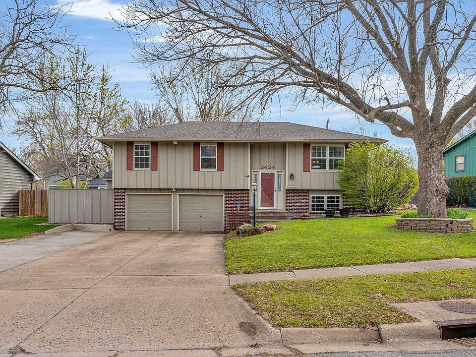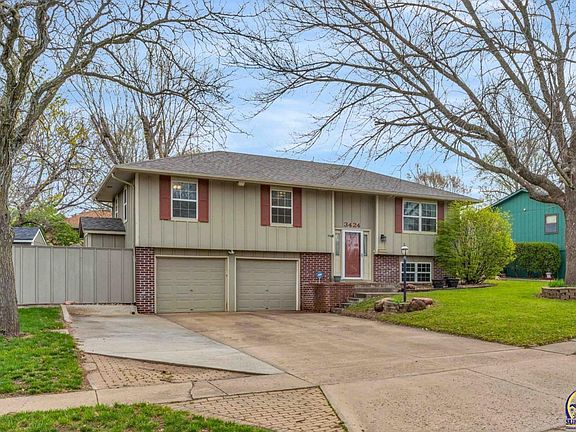 Step into this delightful 3 bedroom, 1.5 bathroom bi-level home located in the heart of Topeka, Kansas. This residence welcomes you with an open floor plan on the upper level, featuring a dining area and a beautiful kitchen with a cozy breakfast nook. All kitchen appliances are included. Beautiful vinyl plank flooring extends throughout the upper level. The lower level features a bonus living room, half bath and a laundry room with extra storage space. The fenced-in backyard is an oasis for entertainment and relaxation, boasting a multi-level deck, a storage shed for your outdoor essentials, charming playhouse, and dog house. Additional features include a 2-car garage and additional parking in the driveway. This home is conveniently situated with a park just across the street, ensuring recreational activities are just steps away.