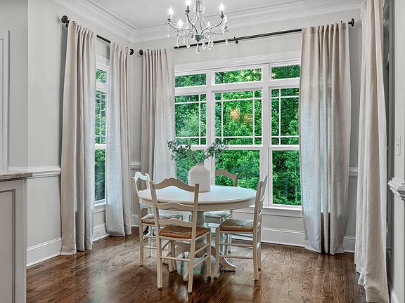 Enter into the realm of luxury living within this meticulously maintained residence nestled in the coveted Westvale community of West Cary. Poised on a secluded wooded lot, this home boasts a plethora of premium amenities, ideal for both relaxation and entertainment. Recent renovations include a new roof installed in 2022, newly installed site finished hardwood floors in all bedrooms as of 2023, and a recently remodeled primary bathroom and closet in 2024, among many others. Upon entry, you're welcomed by a spacious foyer leading to a formal dining room and an inviting open-concept family room with built-ins and a gas fireplace, perfect for cozy evenings. The kitchen is a culinary enthusiast's paradise, featuring top-of-the-line stainless steel appliances, gas range, custom cabinetry hood, and custom tumbled quartz countertops tailored for this former prize-winning parade home. A sizable central island offers ample storage, complemented by a spacious pantry. Hardwood flooring spans the entire first floor, where you'll find a first-floor bedroom with an attached ensuite boasting a tiled walk-in shower. The garage is a standout feature, boasting epoxy floors and a mini-split system for year-round climate control, along with custom lockers and cabinets for organizing sports gear and tools and still offers room for two cars parked inside and additional parking pad outside. On the upper level, explore three generously proportioned bedrooms, each accompanied by its own attached bathroom, ensuring abundant space and privacy for everyone. The primary bathroom is a luxurious spa retreat featuring a large pedestal soaking tub and an expansive walk-in shower with floor-to-ceiling tile and frameless glass doors with rain head shower fixture. Additionally, the walk-in closet boasts hardwood floors and custom shelving, providing ample storage solutions. This home boasts not one, but two bonus areas. The second-floor bonus room could serve as a fifth bedroom, an office, or be spacious enough for both purposes. Meanwhile, the finished third-story bonus space offers a recreational area perfect for movie nights, game nights, or entertaining guests, with additional room for storage. Walk outside to the screened porch overlooking the lush backyard with mature landscaping, offering a serene retreat for outdoor enjoyment. Alternatively, the patio space offers additional room for seating and grilling when entertaining guests. Experience sophisticated living in this esteemed West Cary neighborhood. Schedule your private tour today and immerse yourself in luxury living at its finest.
